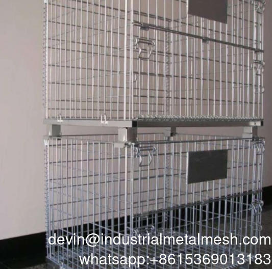 Contenedores plegables de malla de alambre de acero para almacenamiento en almacenes logísticos